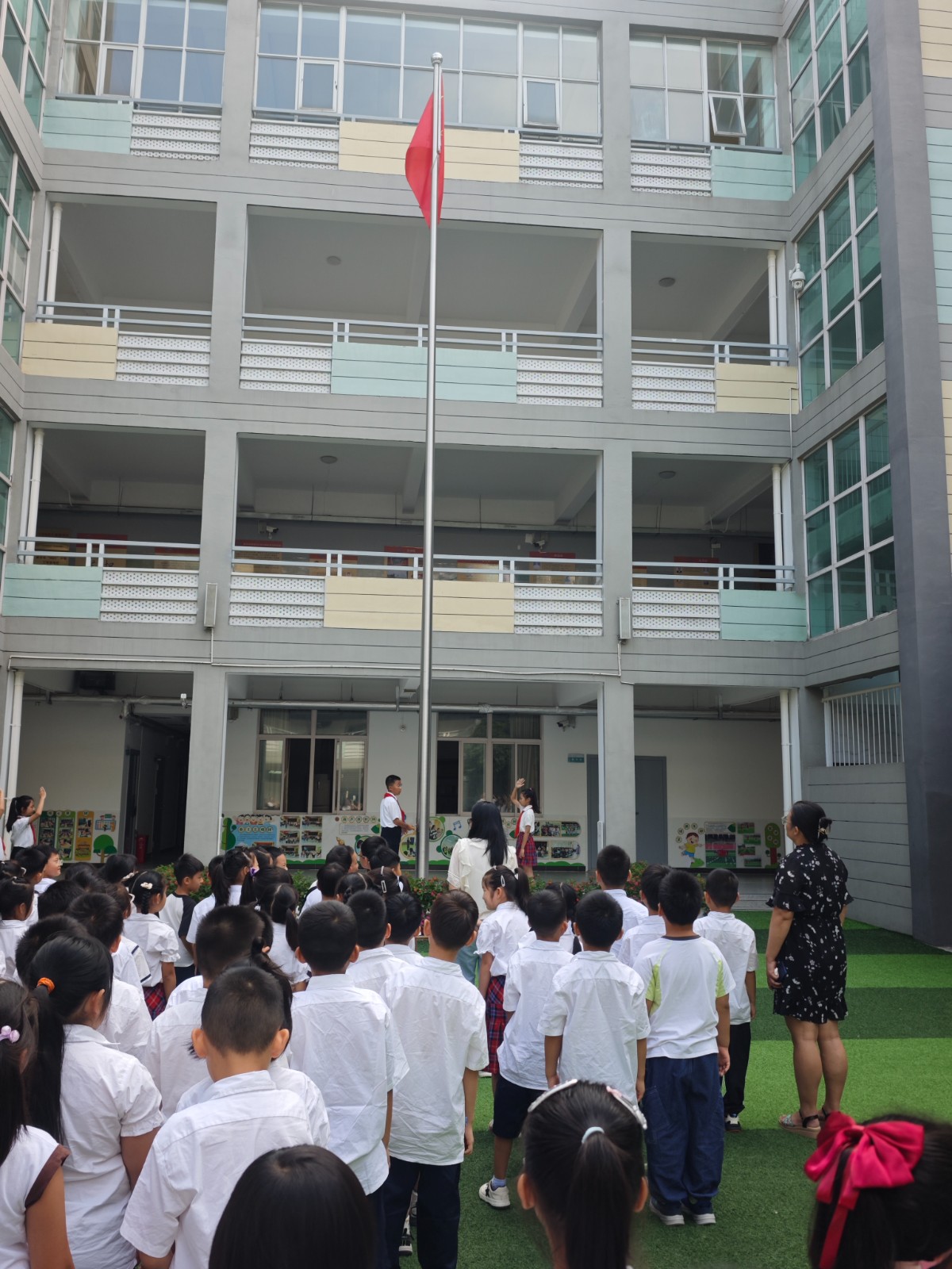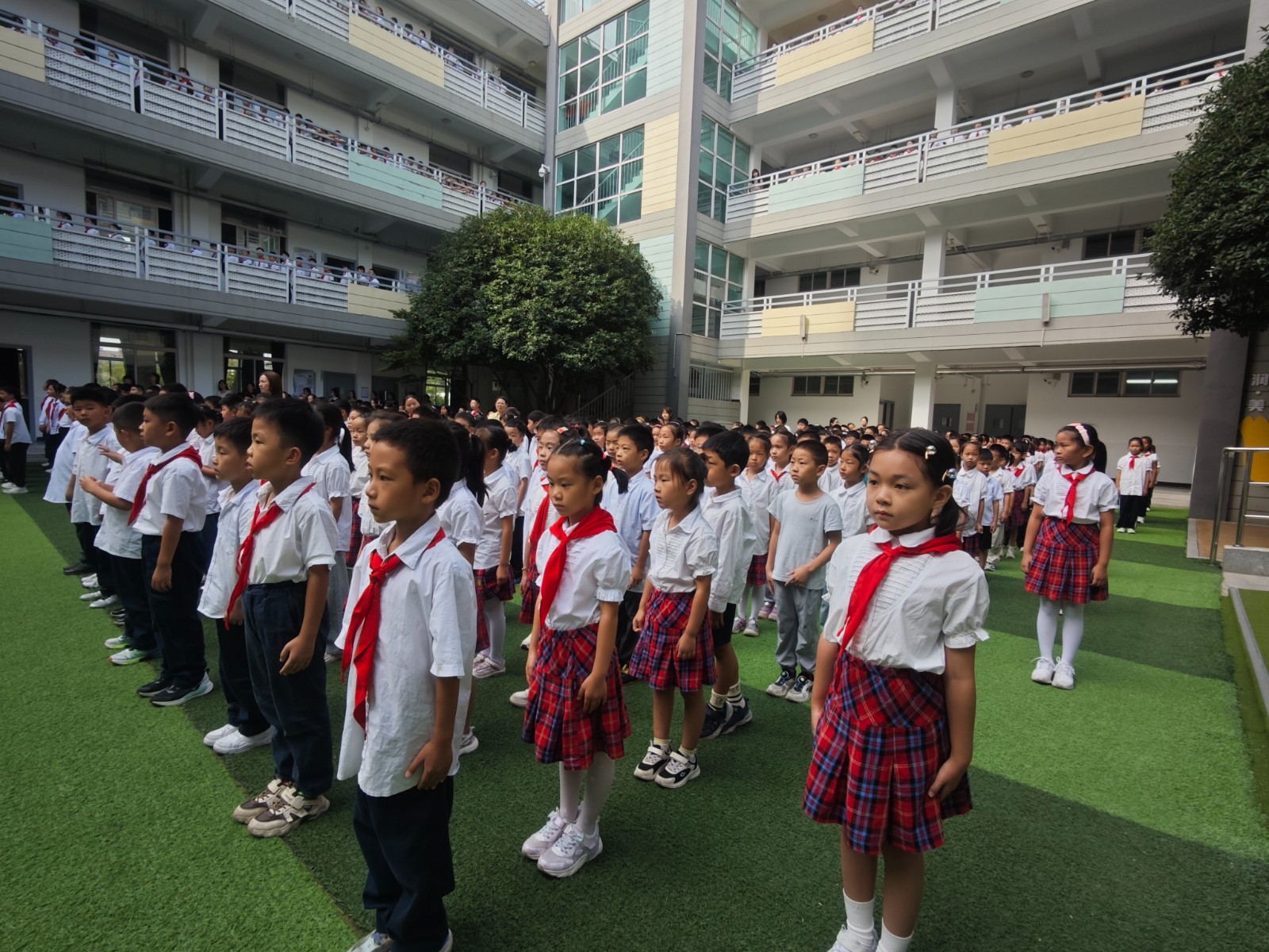 伴随着激昂的《义勇军进行曲》,五星红旗冉冉升起,全体师生肃立注目,嘹亮的歌声中满含对祖国的热爱,也为此次主题升旗仪式拉开了庄重的序幕。本周担任升旗手的是五 2 中队的赵悦然、毕陈瑞两位同学,他们精神抖擞、步伐坚定,以挺拔的姿态完成了升旗任务,展现出新时代少先队员的蓬勃朝气。