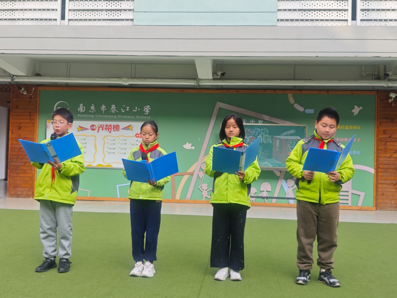升旗仪式上,五(4)中队的队员们带来了深情激昂的诗歌朗诵《宪法之光,照亮前行之路》。他们精神饱满、声情并茂,用真挚的情感、铿锵的语调讲述宪法的成长历程,诠释宪法的核心要义,让在场师生深刻感受到宪法作为根本大法的庄严与神圣,将法治的种子悄然播撒在心中。
